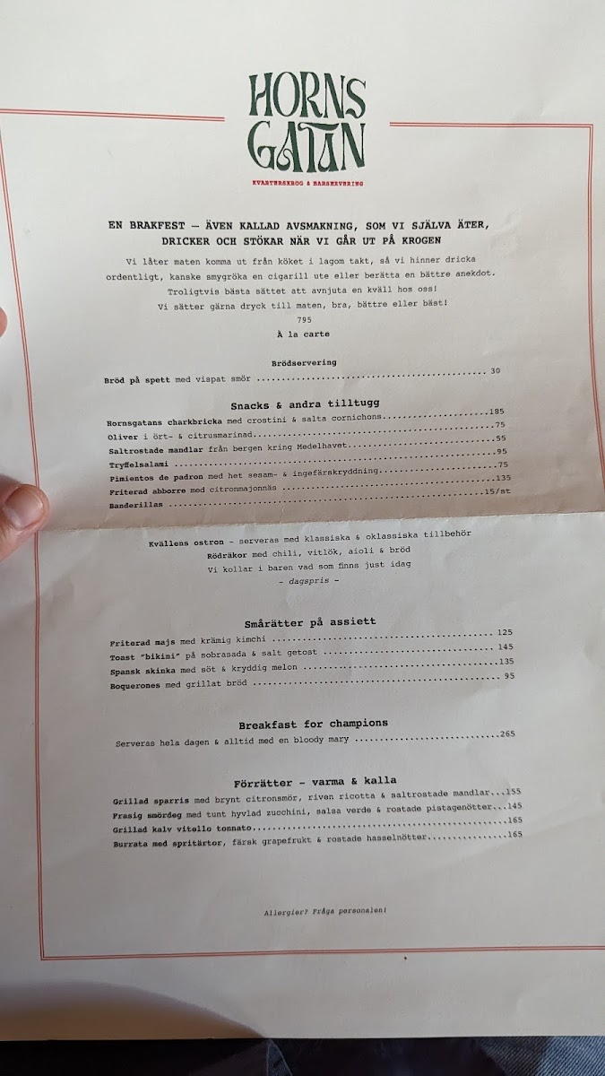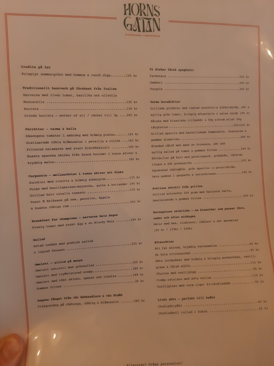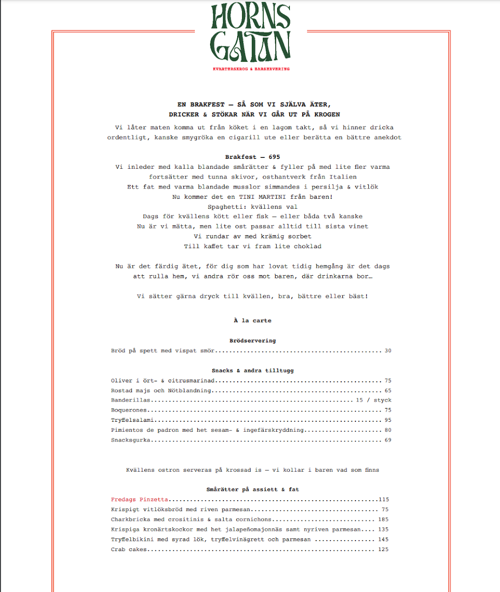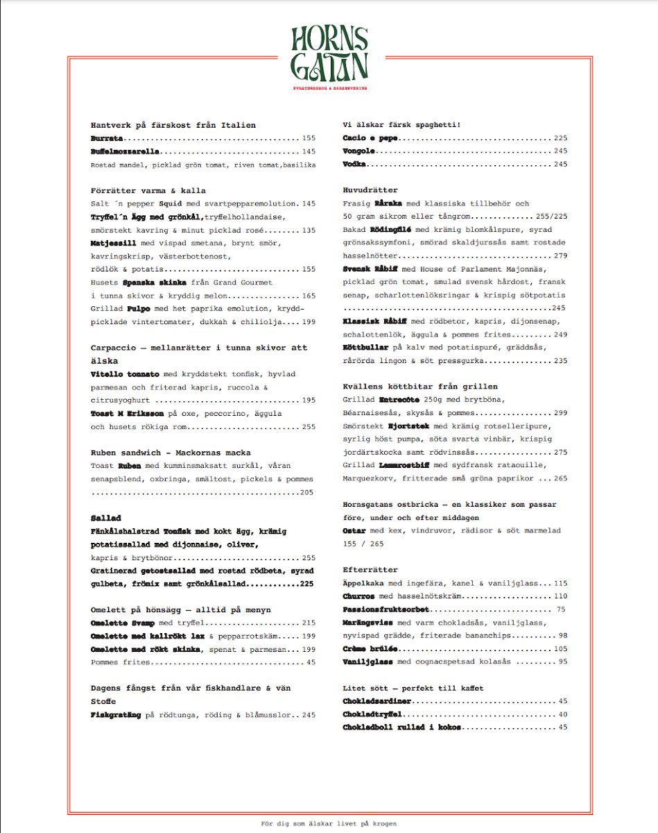 Welcome to Hornsgatan Kvarterskrog & Bar, a charming culinary gem located at Hornsgatan 81 in the heart of Stockholm. This cozy establishment seamlessly marries a chic ambiance with delightful flavors, offering a menu that pays homage to Swedish cuisine while infusing it with contemporary flair.